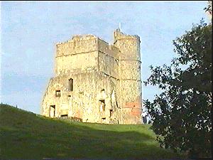 Donnington Castle stands on a grassy hill, overlooking the market town of Newbury in deepest Berkshire. The castle dates from 1386 when it was built for Sir Richard Abberbury, but its most eventful days were during the Civil War: it was garrisoned for King Charles I and held out in a 20 month siege from 31st January 1644 until 1st April 1646. This was the time that most of the destruction took place: the gatehouse is the only part now standing, although you can still clearly see the outline of the original flint walls. During the second battle of Newbury, Sir John Boys and his men defended the castle and King Charles was at the nearby Shaw House. The remains of the 17th century star fort, constructed by Col John Boys in 1643-4 is on the slopes below the castle. Shaw House has an upstairs room with a plaque encasing a bullet hole - a shot is said to have been made at the King while he dressed by the window. There is a legend of a secret tunnel between the castle and Shaw House - although it has never been found.