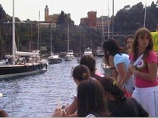 on the boat, approaching Rapello, and from our hotel room. On the right June relaxes