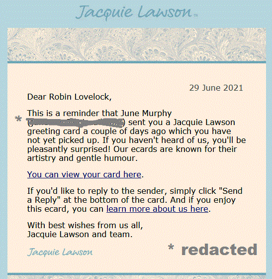 Thanks for your emailed cards, and these snailmail cards, sent through the post.