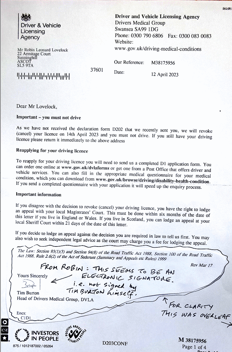 Our Ref: FFDVLAA4. Case details public on www.gpss.co.uk/ffdvla.htm since February 2022.