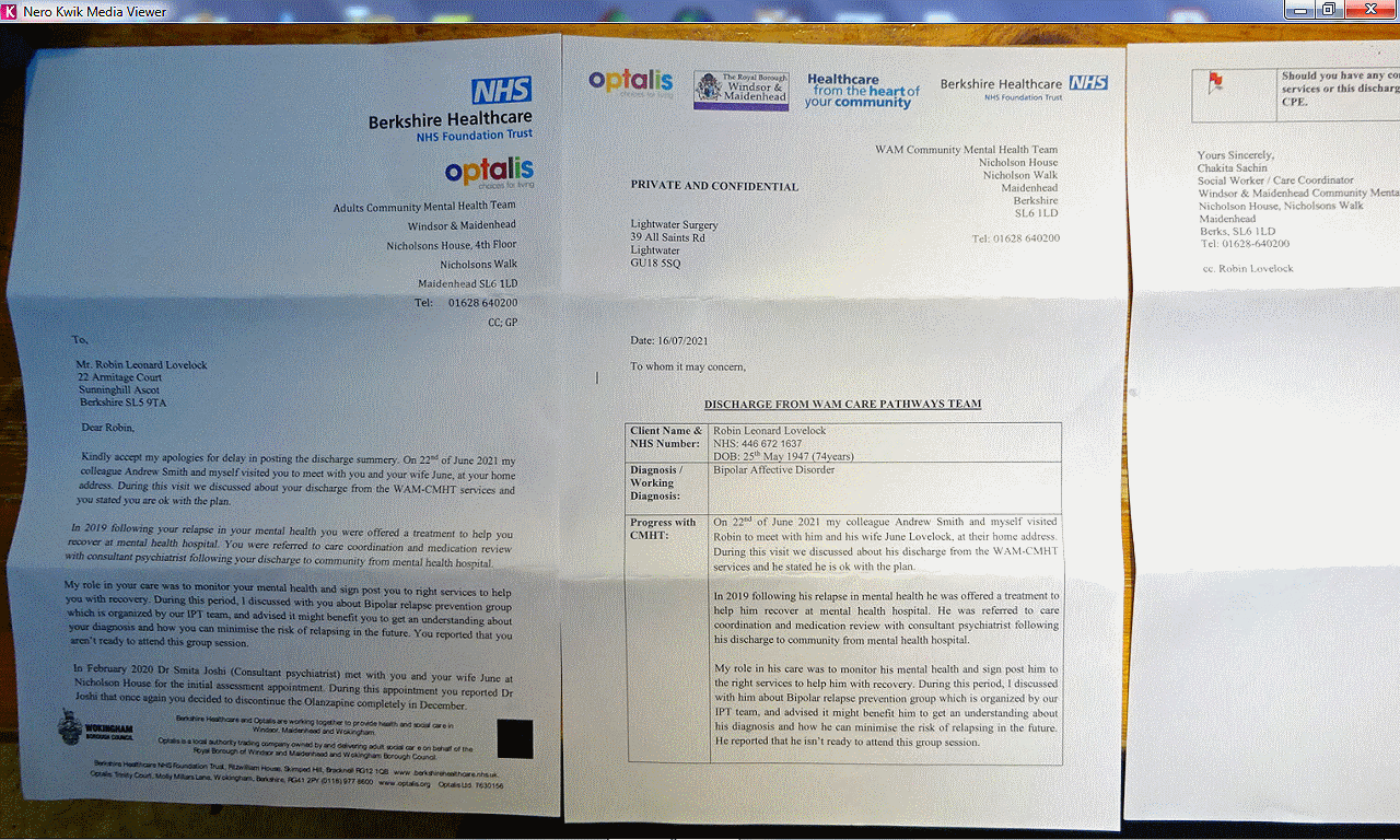 4. BUT: Discharge Letter from Chakita on 16th July 2021 discharged Robin from the Mental Health System.