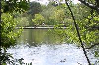 In the early 1950s the large lake - originating from a clay quarrey, I believe - was an extremely popular day trip location. The lake was used for swimming, paddle boats and even a pleasure steamer. On a sunny weekend the car park would be full of coaches, bringing day-trippers from afar. The picture on the right is from about 1960, and reproduced here courtesy of The Francis Frith Collection on www.francisfrith.co.uk and can be found in the book, "Wokingham & Bracknell" by Trevor Ottlewski ISBN1-85937-329-1. Of the buildings, it seems that only the old bandstand, centre, remains. Compare it with the picture above.