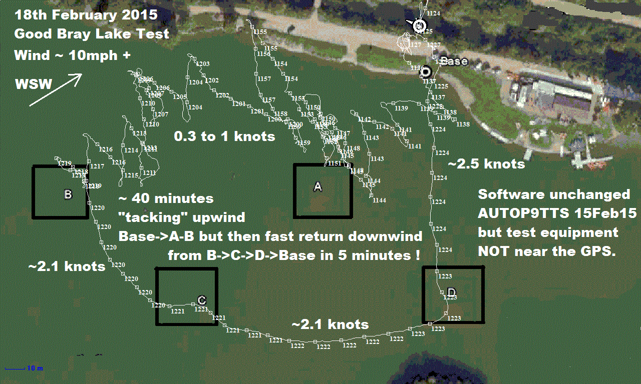I was horrified to discover, after looking at Blog5, that Snoopy's boat had not been tested on Bray Lake since the lastAtlantic Attempt in March 2015 ! It's hardly surprising that the rudder may have been a bit off-centre ! Looking further back in time, in Blog4, shows weeks of 24/7 reliability testing on Bray Lake, in February and March 2015. Click on that picture to enlarge it. The last "Bray Lake Tests" were in February 2015, and show tendency to steer to the right. It seems it was never corrected !