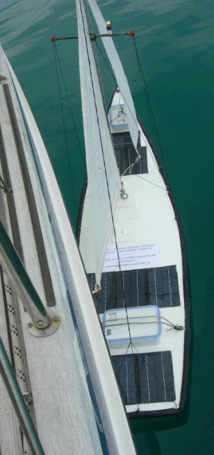 Barry sent us these pictures and video clips of "That'll Do", bobbing about becalmed, at the southern most part of her mission...