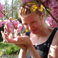Here we are, pausing on a walk in the woods near us, admiring the wild primroses.